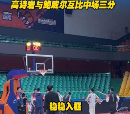 广州山东踩场!小高与艾伦叙旧+与鲍威尔PK中场三分,邱彪谈疲惫